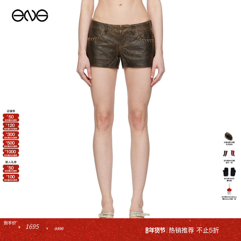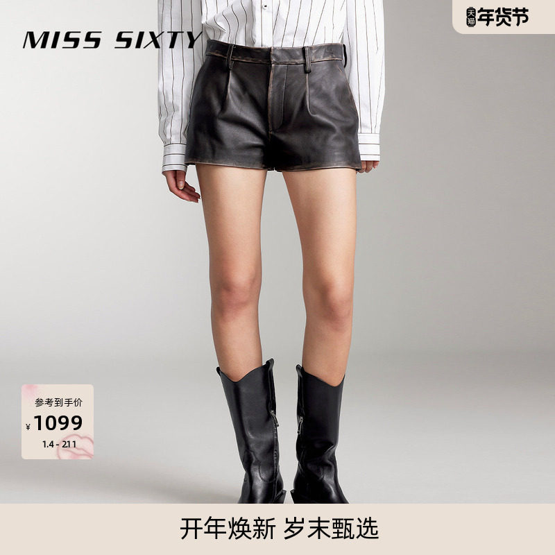 Miss Sixty休闲裤女简约时尚真皮短裤高腰直筒高级复古通勤显瘦