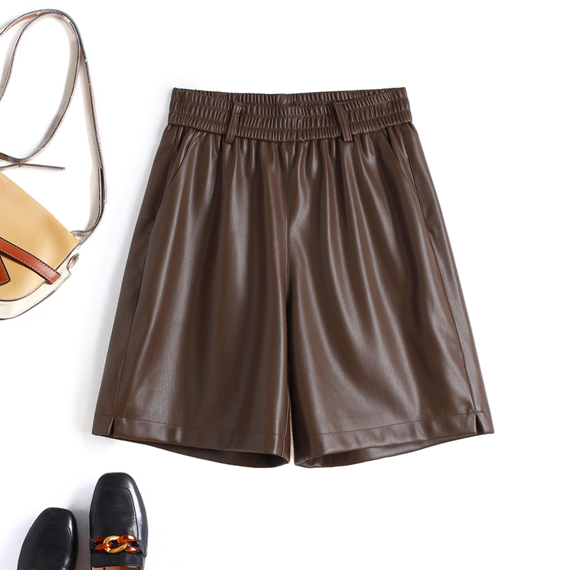 RUBBIT秋季新品 “贵气老钱穿搭” 舒适好版型松紧腰进口真皮短裤