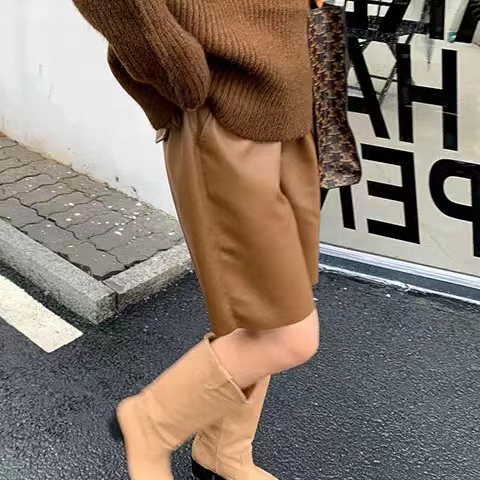 2025春秋新款韩版真皮短裤女直筒外穿高腰显瘦休闲小皮裤时尚靴裤