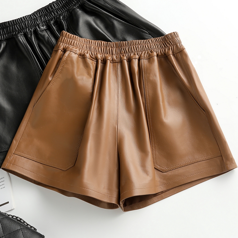 头层牛皮真皮短裤女高腰a字百搭显瘦外穿松紧皮短裤2025秋冬新款
