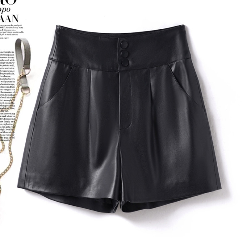 特价清货新款绵羊皮皮裤真皮短裤女高腰a字通勤外穿百搭简约短裤
