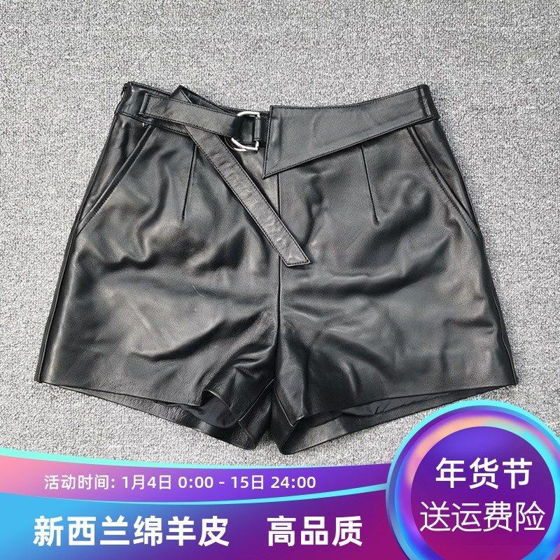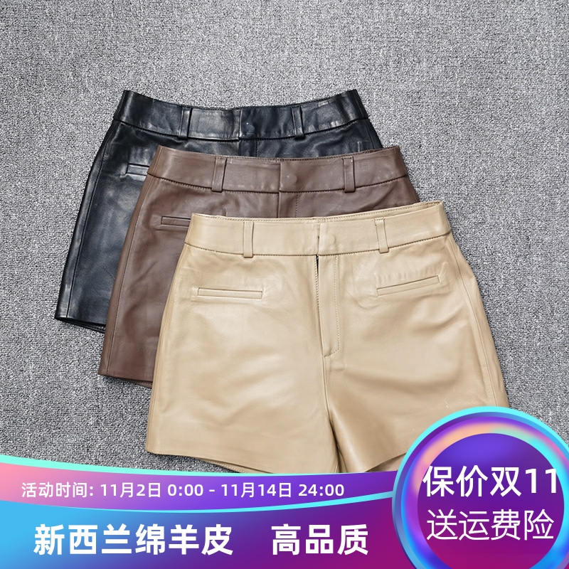反季特价新款绵羊皮皮裤真皮短裤时尚气质高腰显瘦小个子休闲短裤
