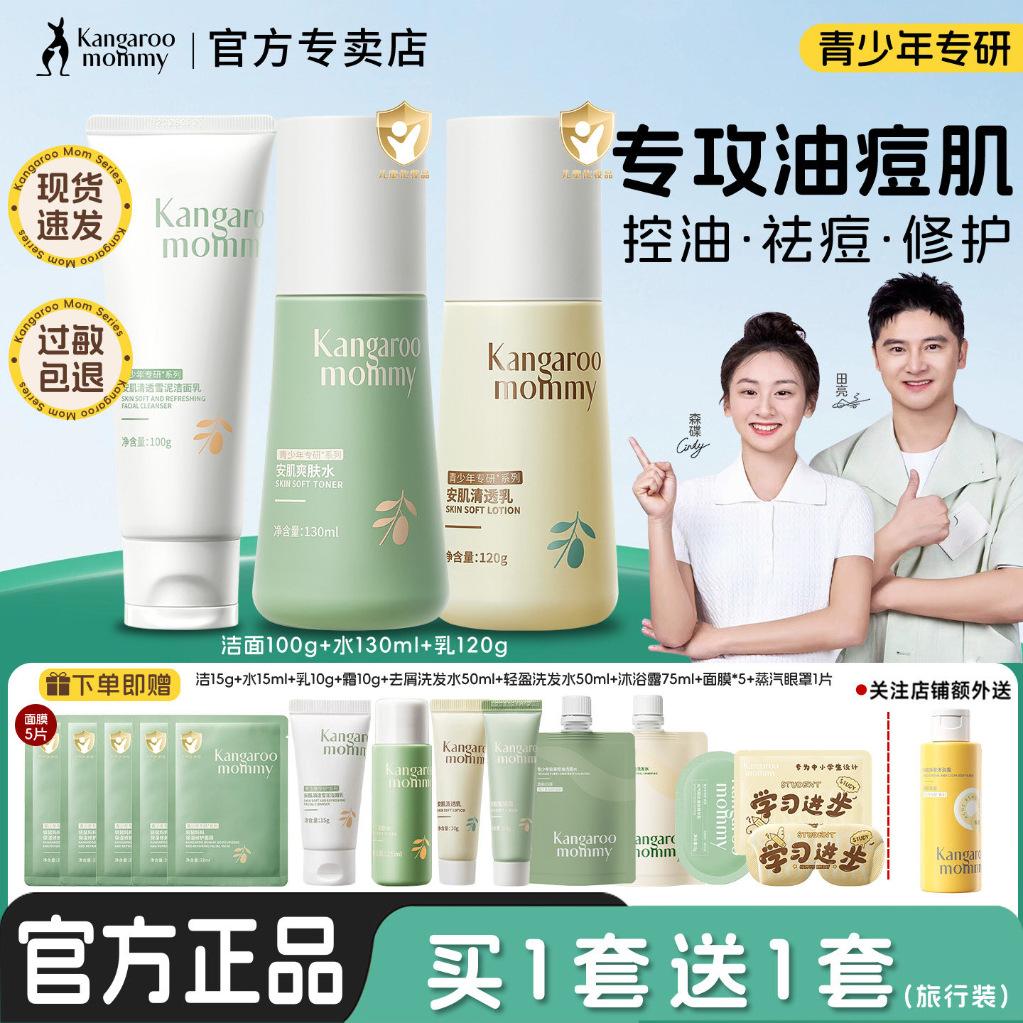 袋鼠妈妈青少年护肤品套装水乳霜儿童洗面奶男女孩官方正品旗舰店