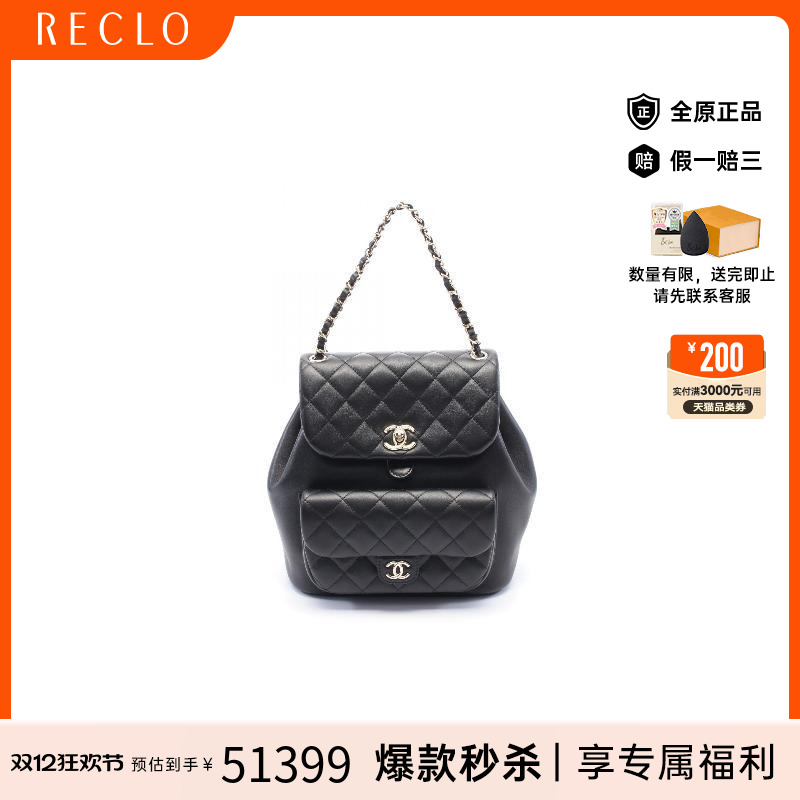 中古Chanel香奈儿女包A级95新duma羊皮双肩包黑色时尚经典RECLO