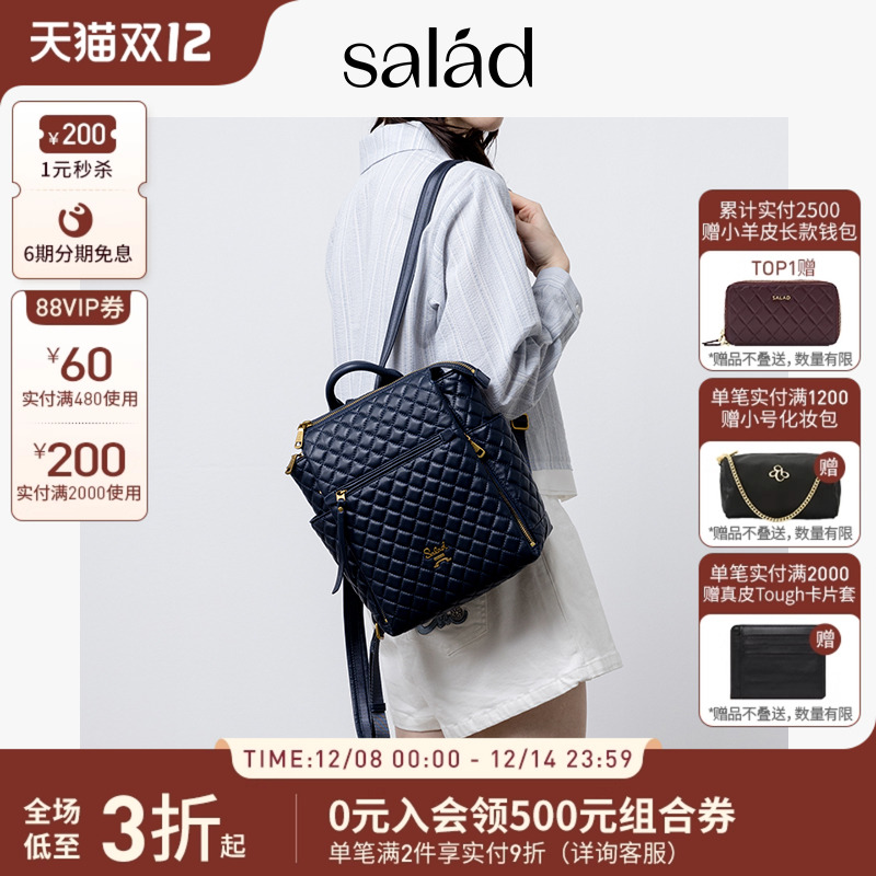SaladAll-purpose菱格双肩包羊皮轻奢高质感背包大容量轻便女包