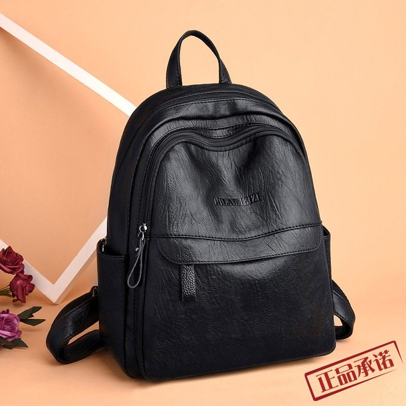 双肩包女士2025新款时尚潮百搭旅行黑色软皮仿羊皮休闲简约小背包
