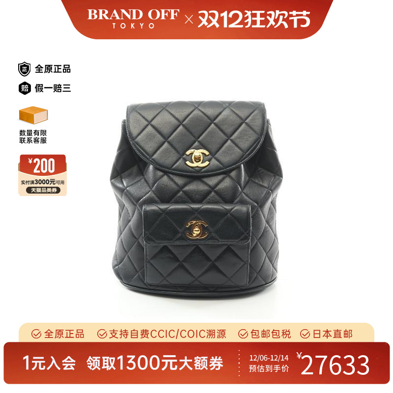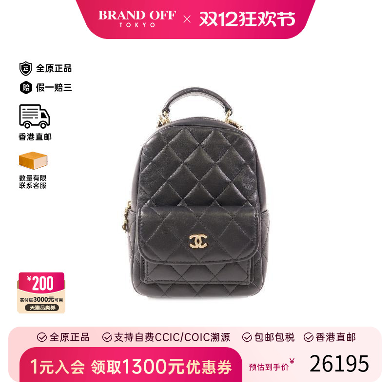 中古Chanel香奈儿女包B级9新Backpack背包羊皮双肩包黑HK复古欧美