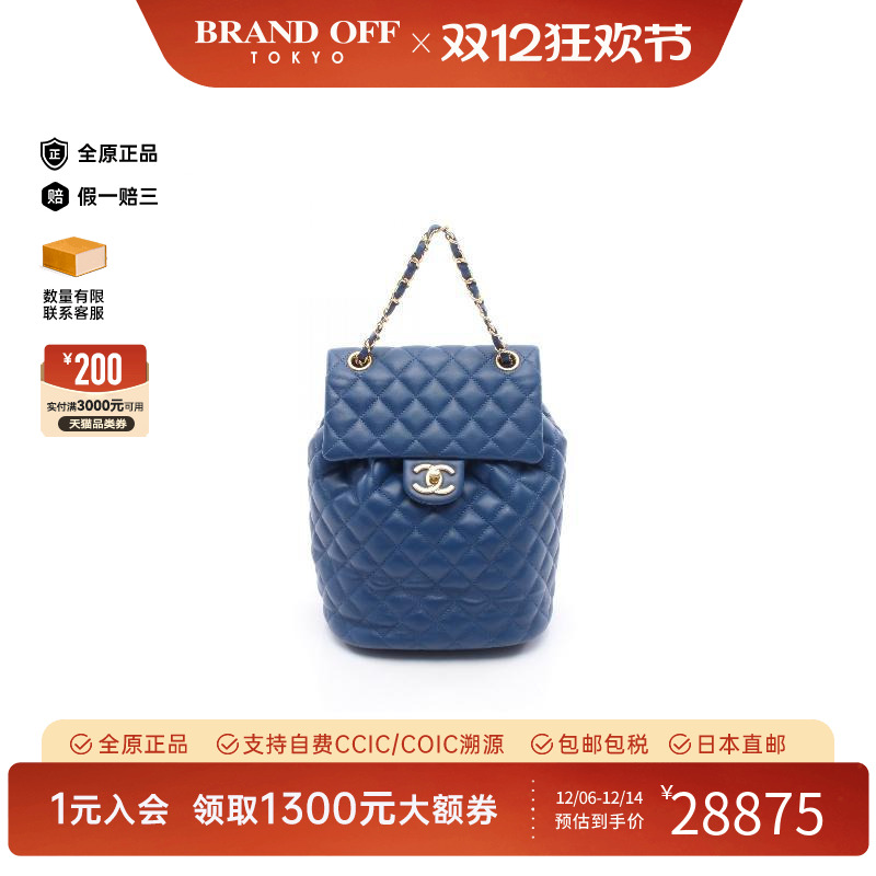 中古Chanel香奈儿女包A级95新Backpack背包羊皮双肩包蓝色高级感