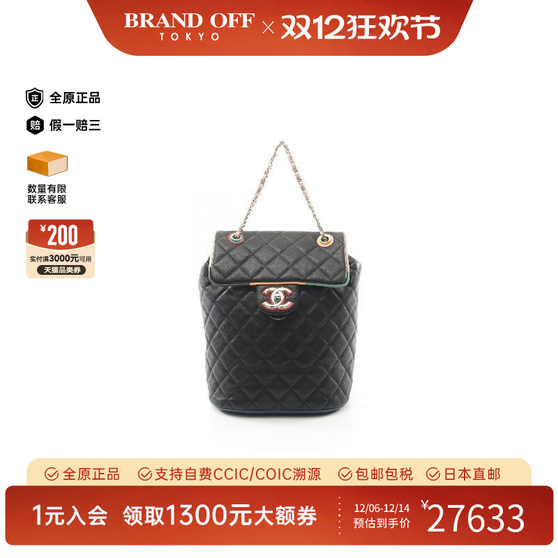 中古Chanel香奈儿女包B级9新Backpack背包羊皮双肩包黑色BRANDOFF
