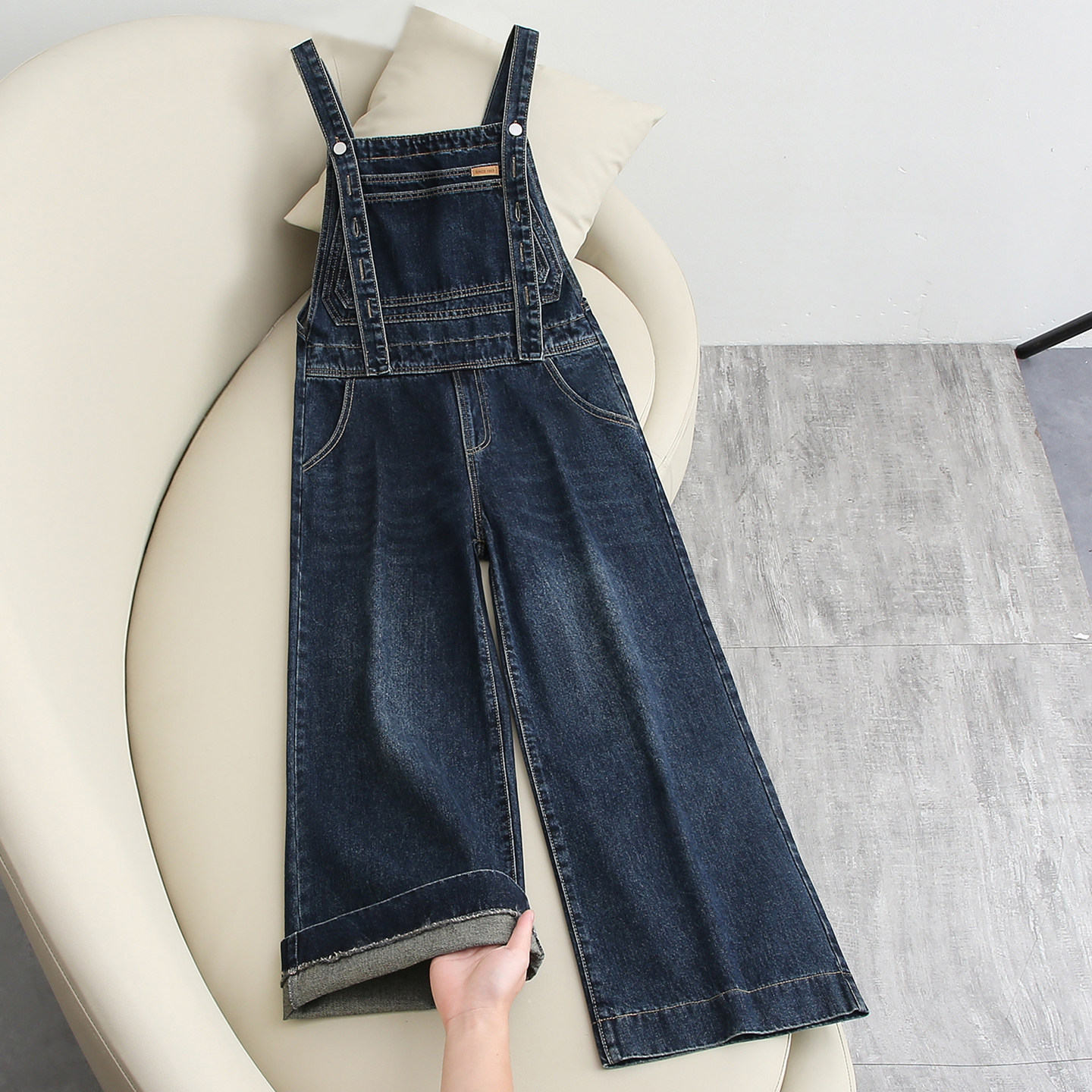 盐系减龄牛仔背带裤女春秋季新款韩系宽松显瘦直筒复古连体阔腿裤