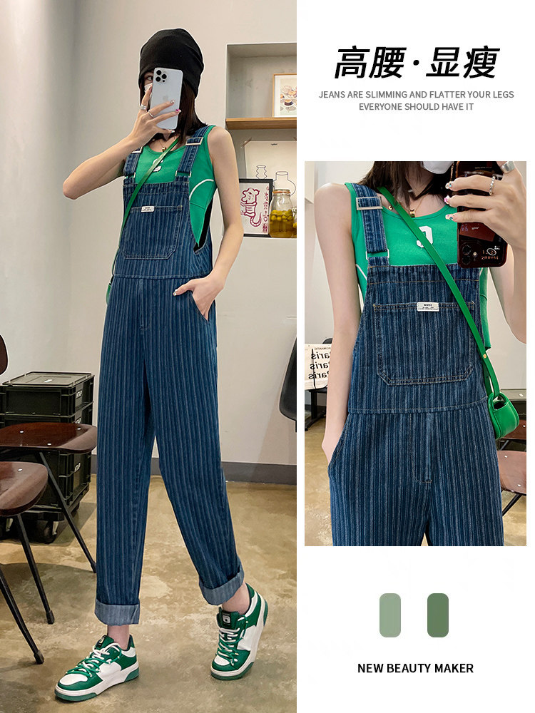 网红炸街牛仔背带裤女夏季2025新款春秋显瘦减龄吊带连体阔腿裤子