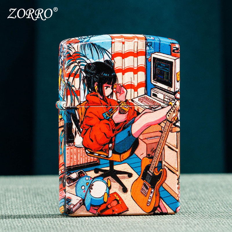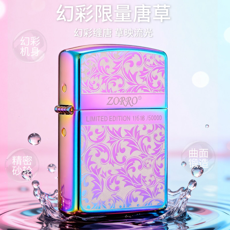ZORRO佐罗炫彩花纹唐草煤油打火机个性创意防风情人节送男友礼物