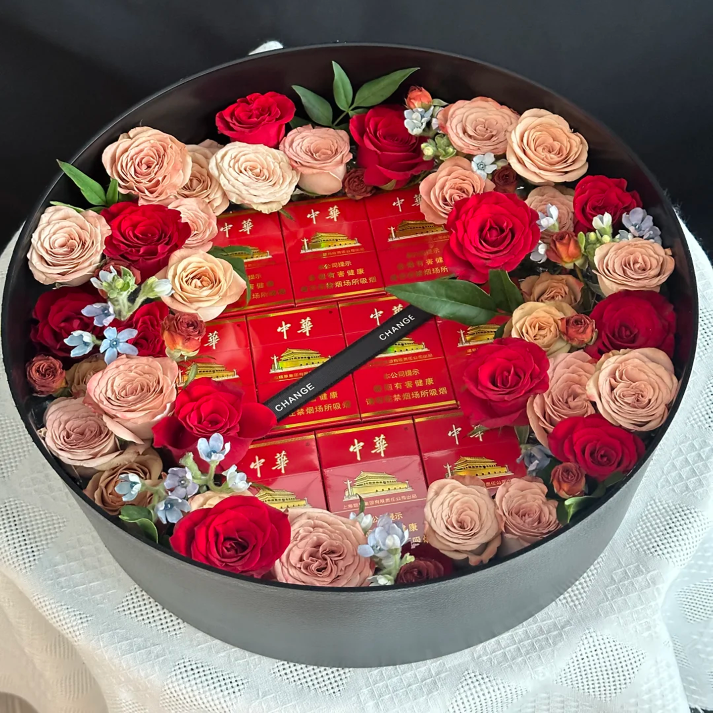 方形创意玫瑰花束装烟礼盒生日情人节礼物送男友闺蜜浪漫表白礼品