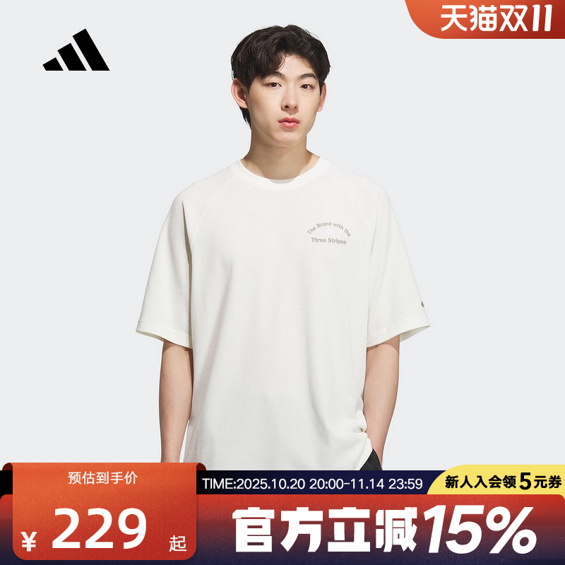 adidas阿迪达斯男子2025夏季新款休闲运动圆领纯白短袖KF0130