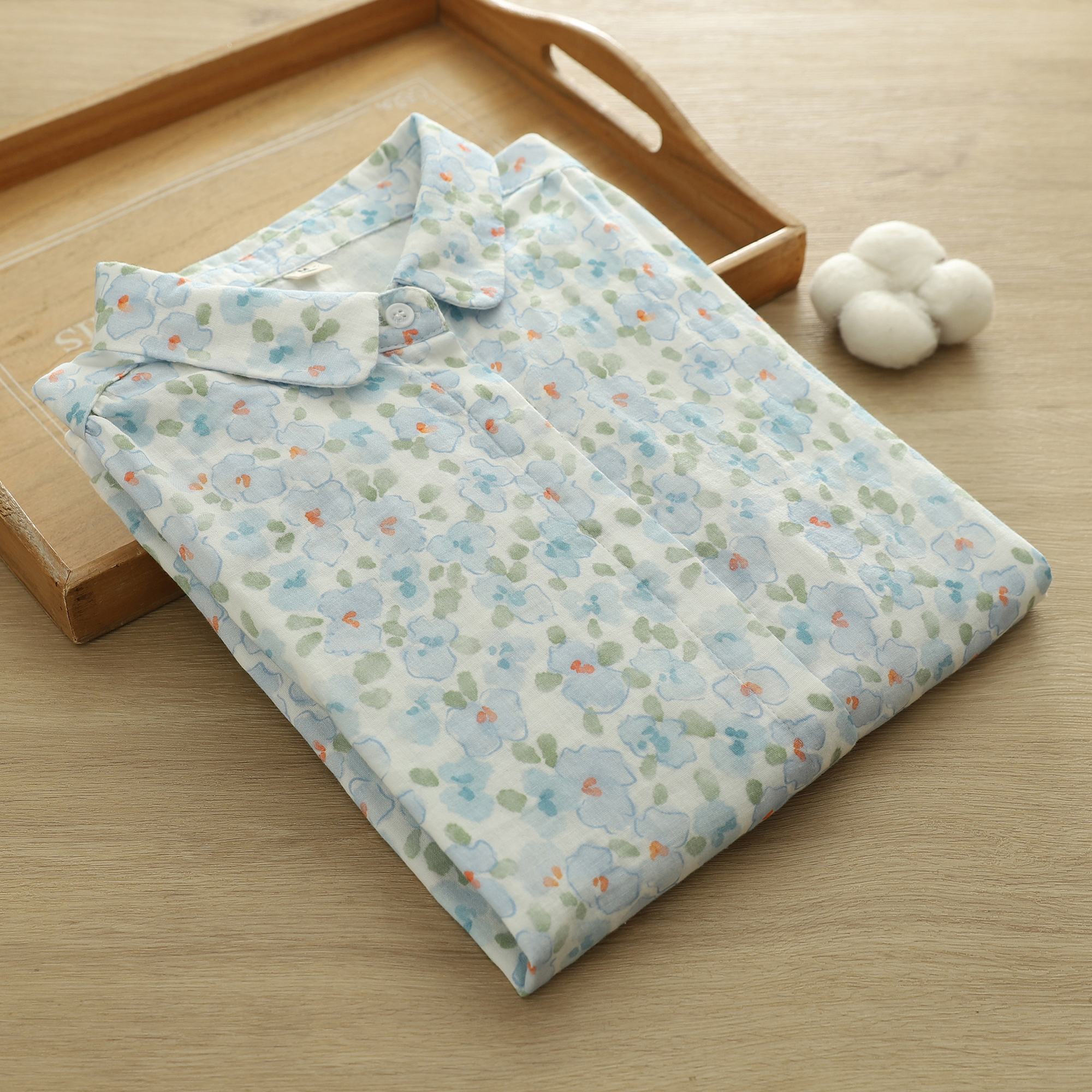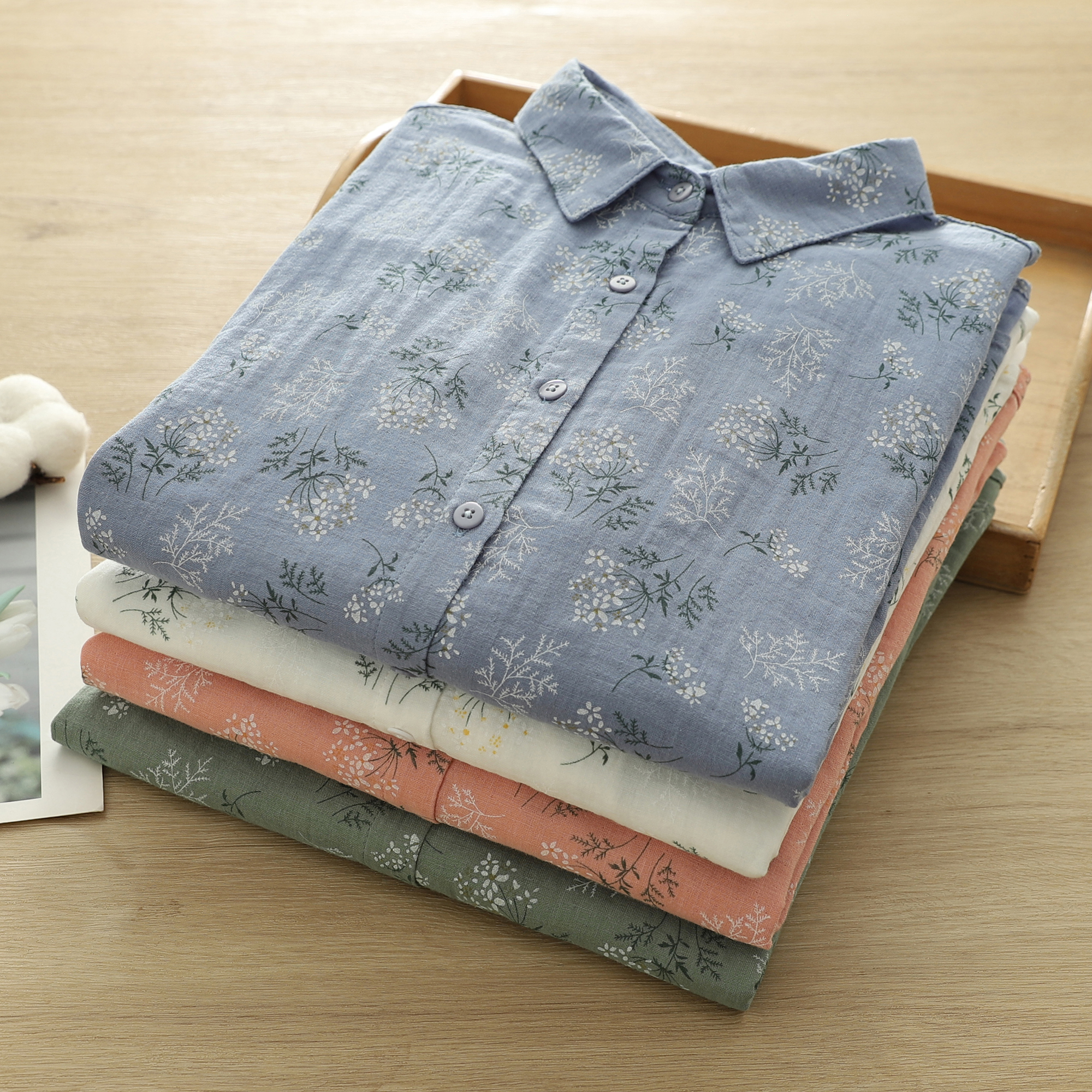 2025秋季新款双层棉纱印花长袖衬衫女韩范百搭宽松柔软纯棉衬衣