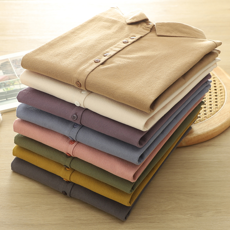 磨毛纯色衬衫女宽松百搭韩范文艺秋冬全棉女士翻领长袖衬衣打底衫