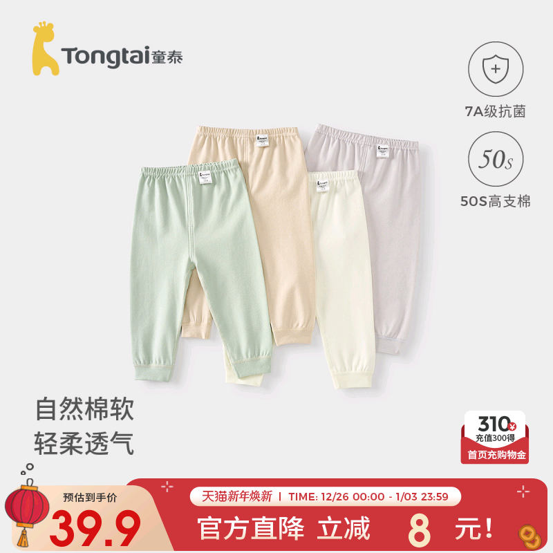 童泰宝宝裤子春秋季纯棉男童女童长裤儿童秋裤家居睡裤纯色打底裤