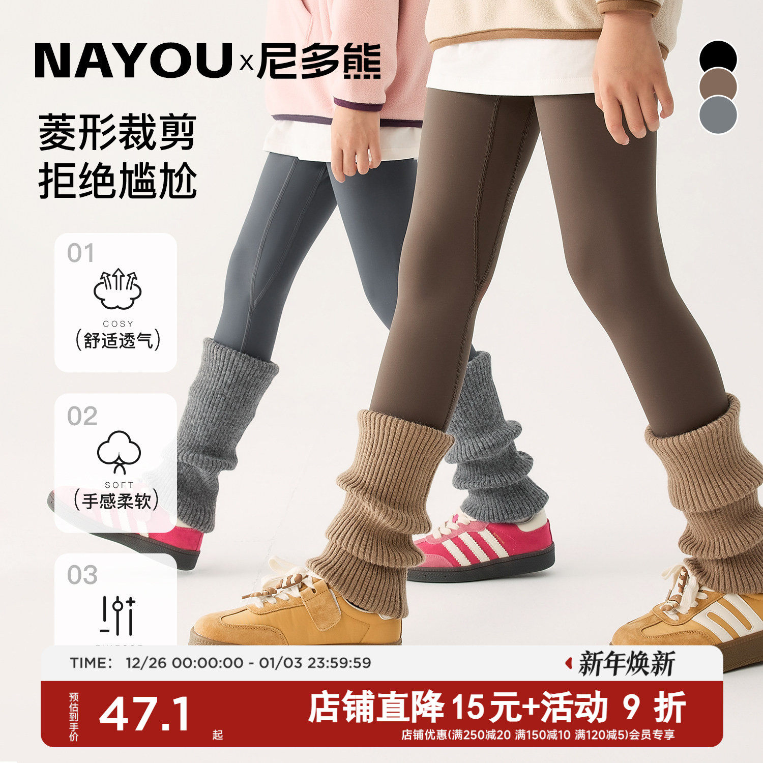 纳柚儿童裤子春秋女童鲨鱼裤中大童长裤瑜伽裤外穿加绒打底裤秋冬