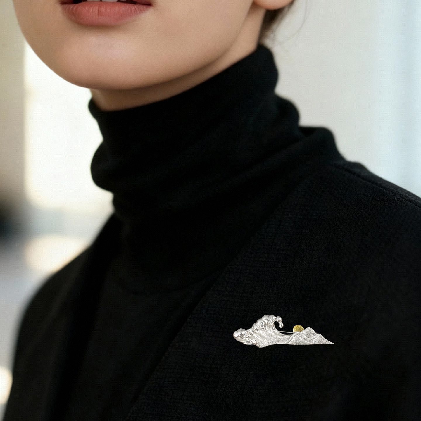 【山海 椿屿】925纯银胸针新中式唯美极简意象温婉情人节礼物