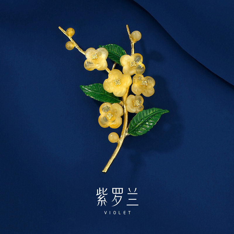 【紫罗兰正版】金桂S925纯银胸针高档女桂花胸针生日礼物潮别针