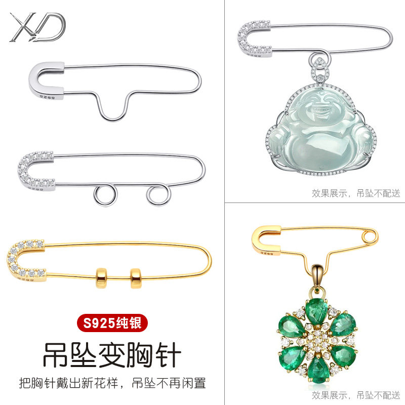 【吊坠变胸针】925纯银胸针U形多用银制防走光别针锁针吊坠扣配饰