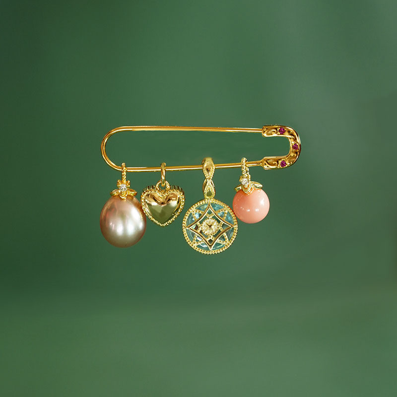 芭家高定 爱心贵妇 M家日本akoya大溪地海水珍珠拼色925纯银胸针