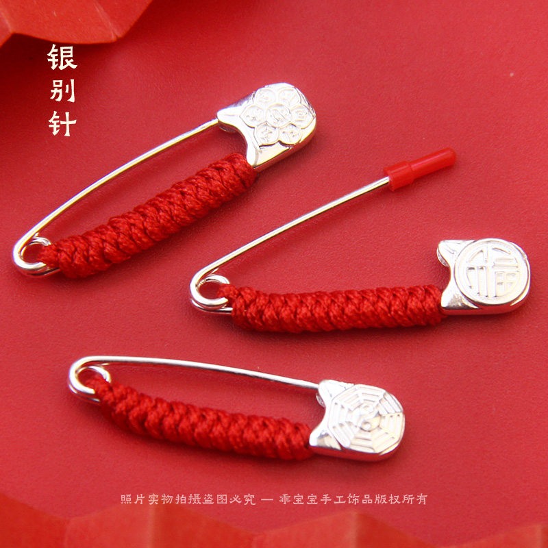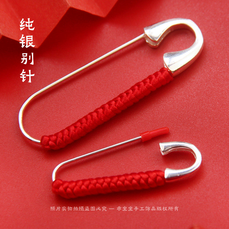 S925纯银宝宝别针防惊吓婴儿孕妇外出压惊红绳胸针配饰品周岁礼物