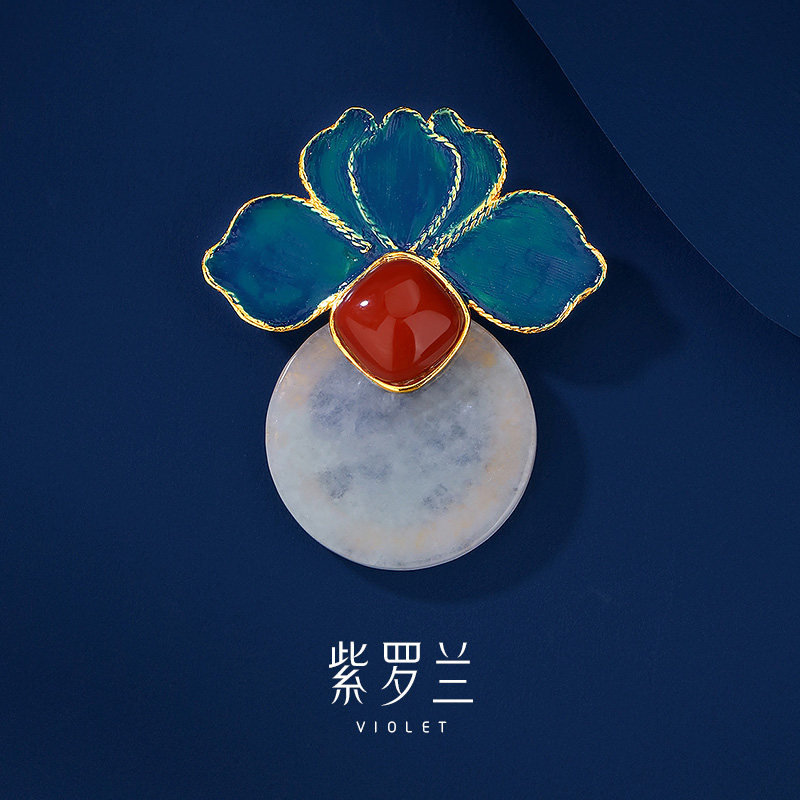 宫里上新旗袍压襟女新中式纯银胸针和田玉挂件轻奢生日礼物送妈妈