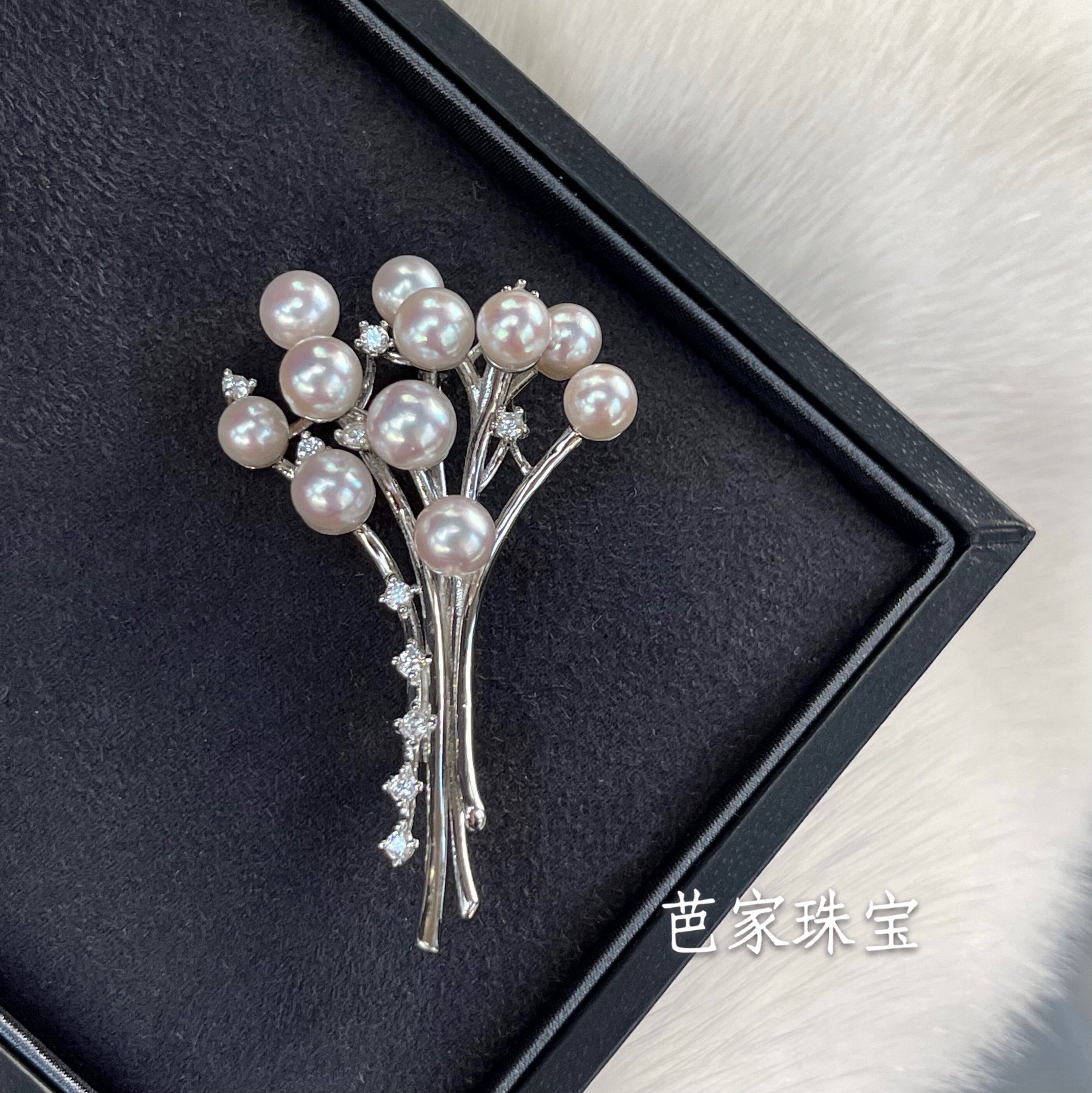 芭家珠宝高定 捧花 T家新款日本akoya海水珍珠925纯银胸针特