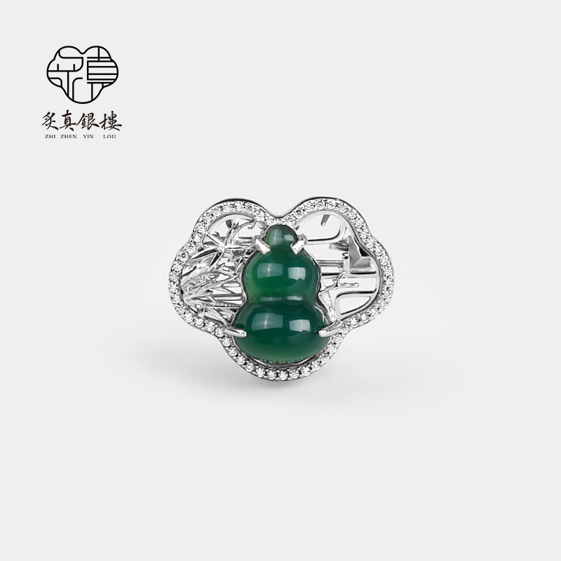 天然绿玉髓葫芦925纯银胸针女高端精致小众西装配饰大衣胸花别针