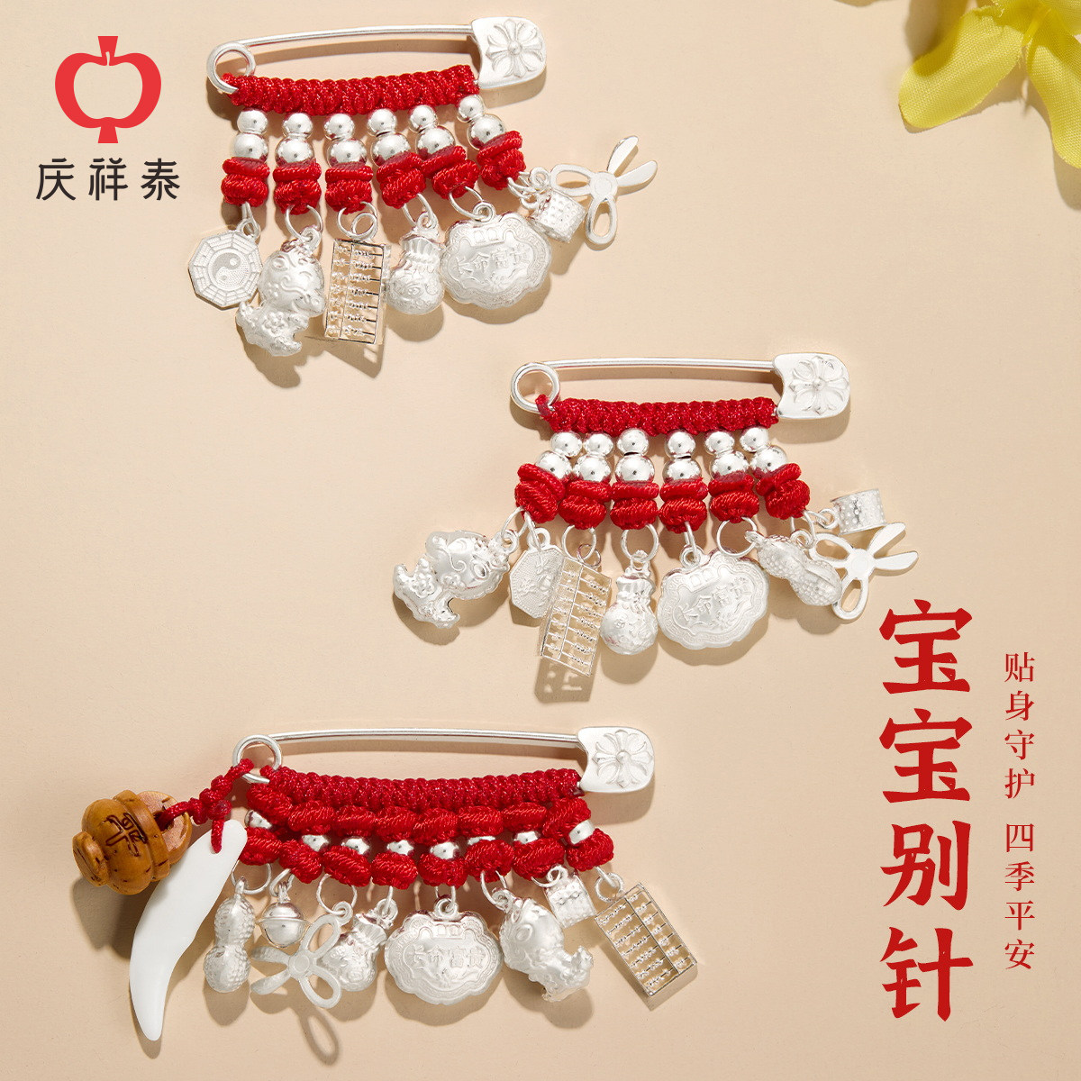 【杭州灵隐】S925纯银孕妇宝宝婴儿平安锁压惊护身符平安别针胸针