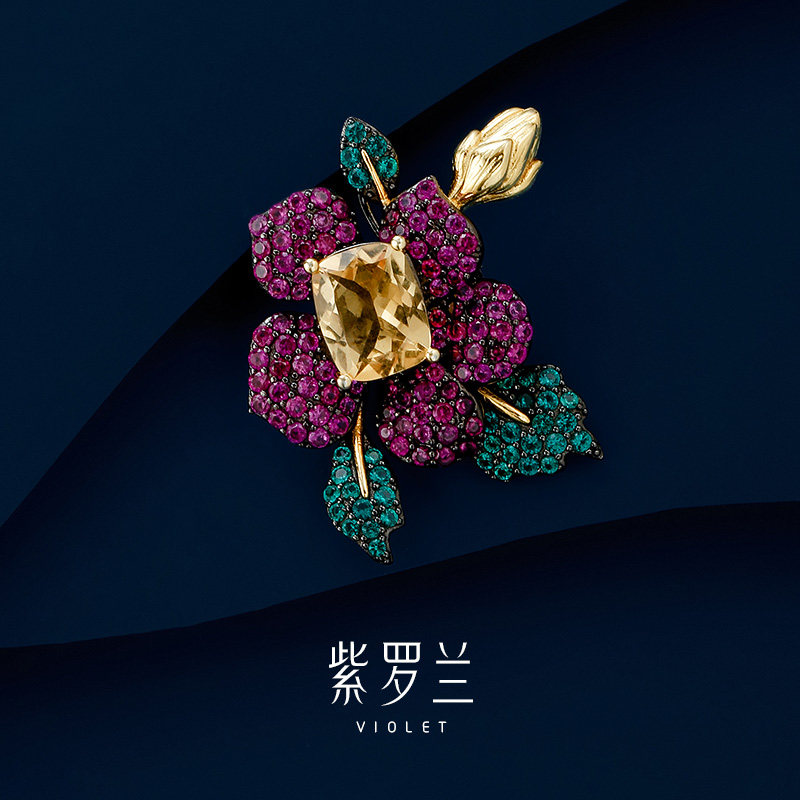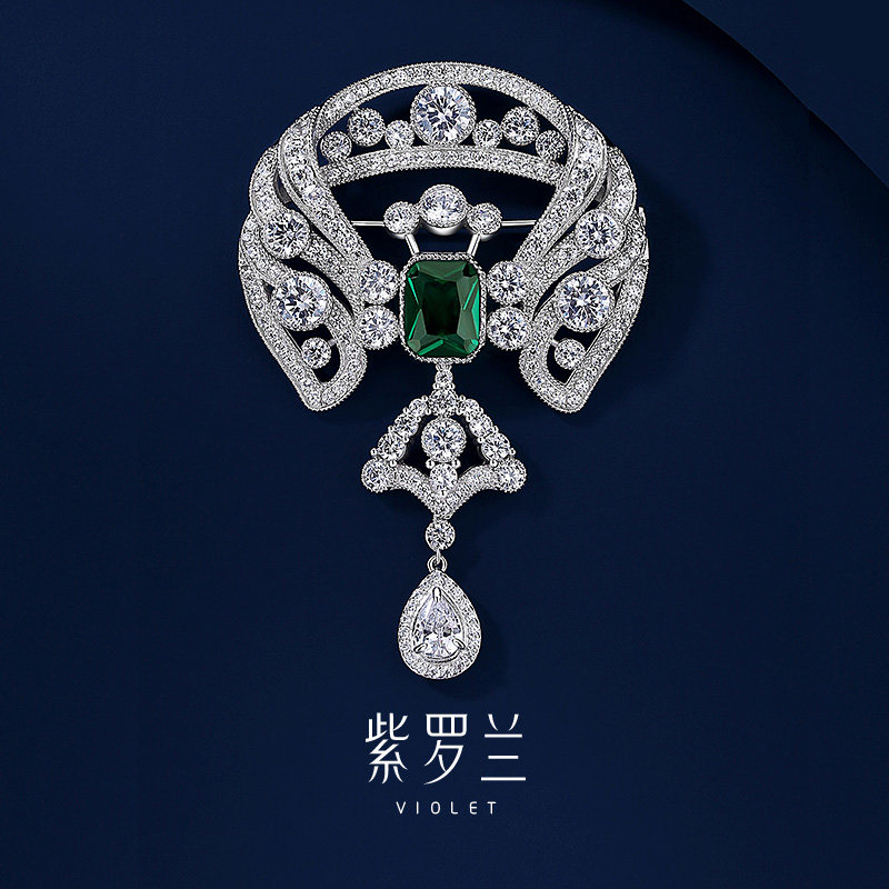 【紫罗兰正版】金云碧月S925纯银胸针高档女宫廷古风胸花别针小众