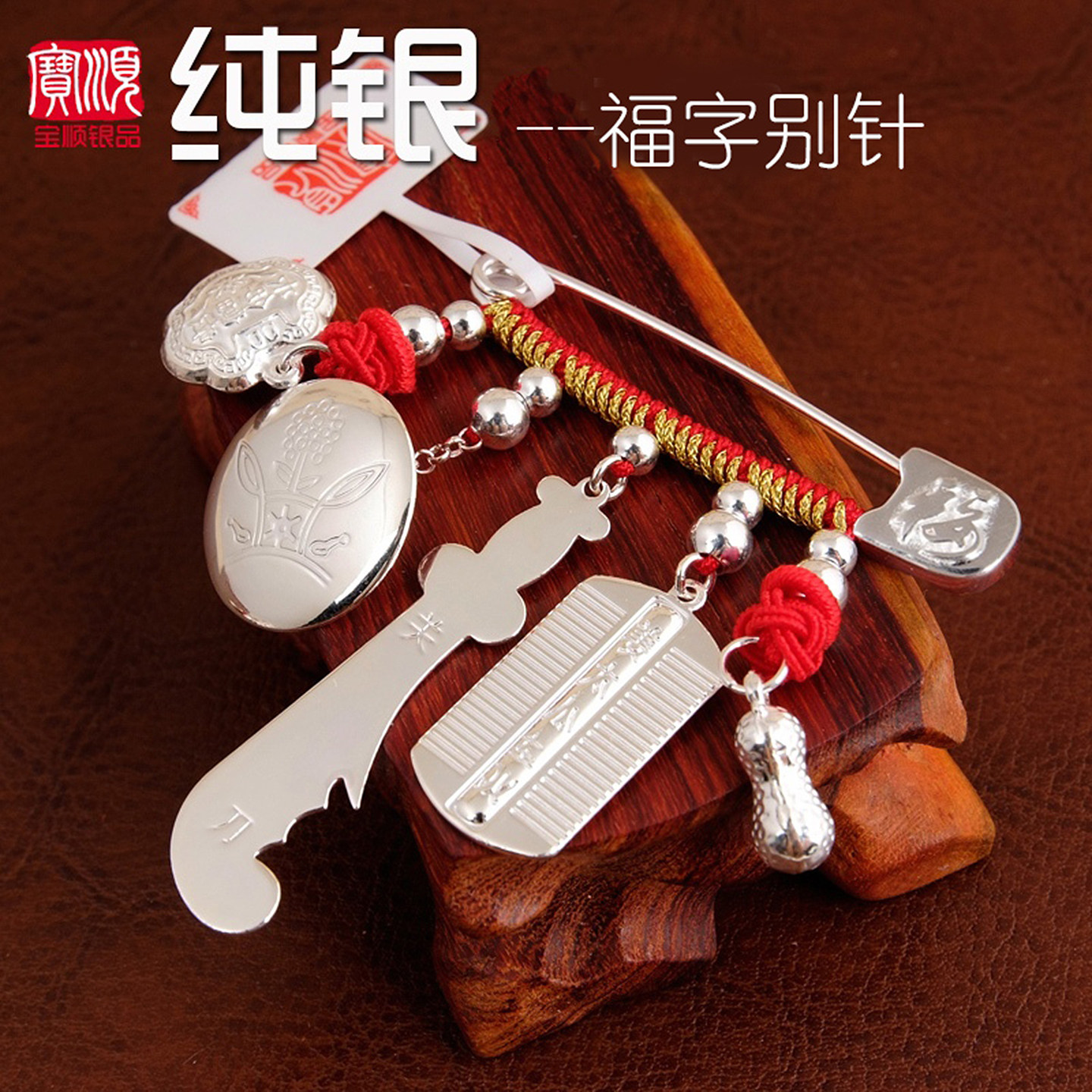 新生宝宝别针婴儿纯银关公刀梳子镜子孕妇马蛇龙胸针外出生肖挂件