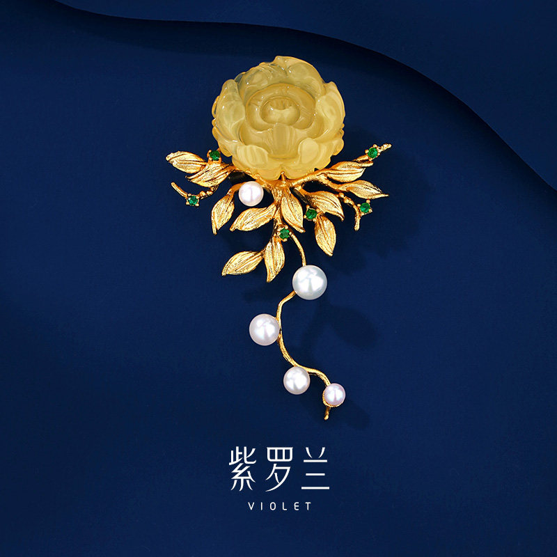 【紫罗兰正版】牡丹说S925纯银胸针高档女牡丹花朵珍珠胸针别针潮