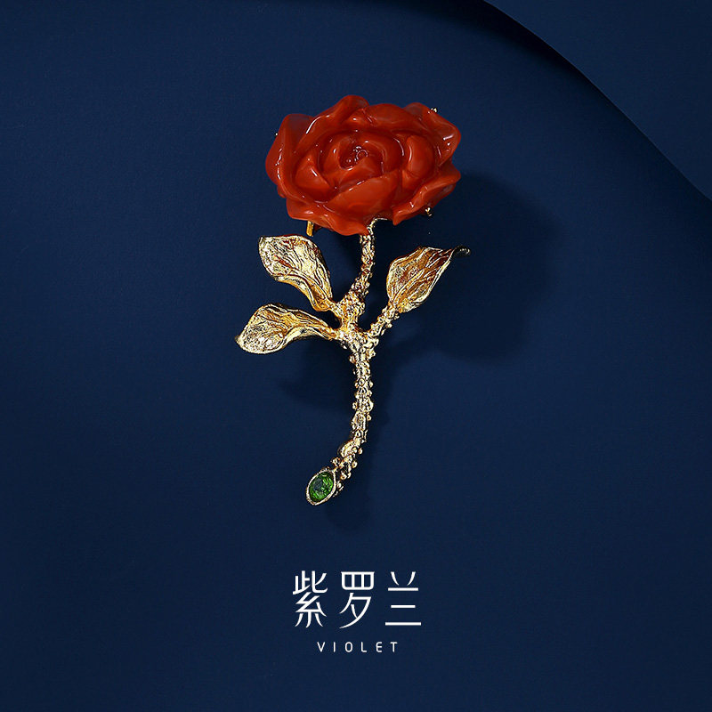【紫罗兰正版】红瑙玫S925纯银胸针高档女玫瑰胸花别针生日礼物