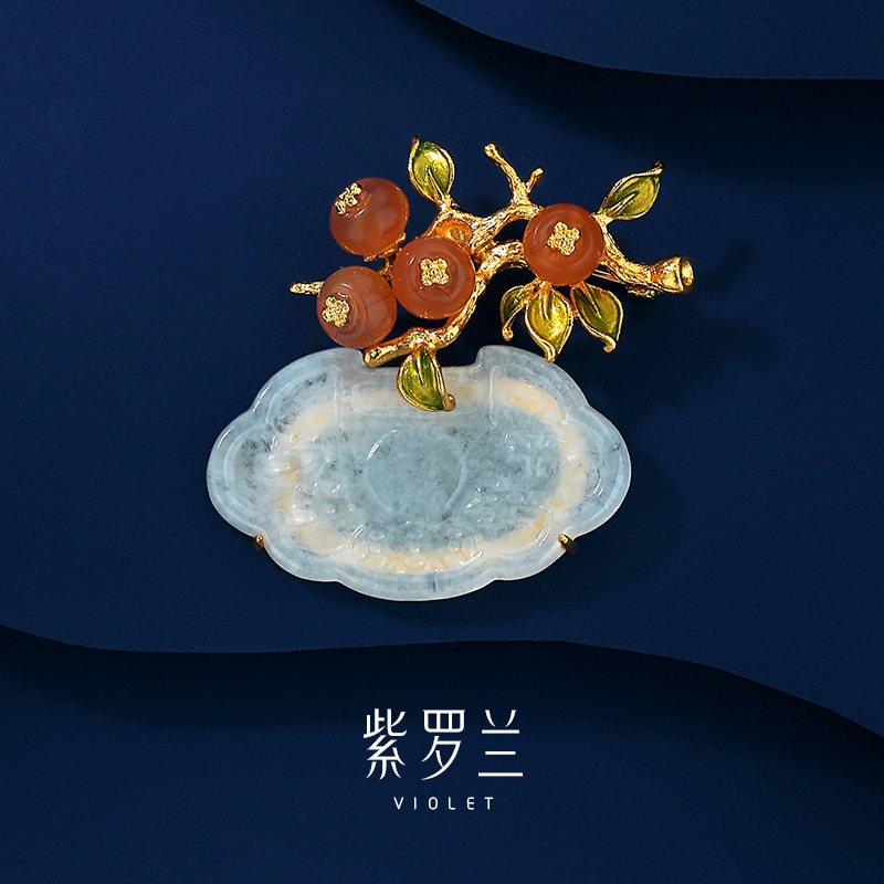 【紫罗兰正版】柿柿顺心S925纯银胸针高档女柿子胸花小众设计别针