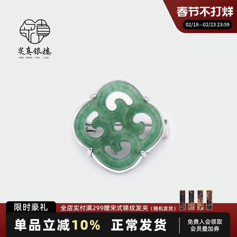 天然玉石999纯银胸针女款高级感轻奢四叶草大衣胸花中式精致别针