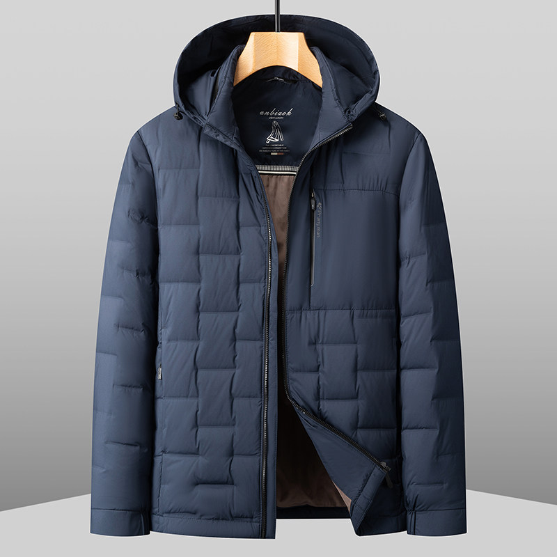 黑劲大码男装90白鸭绒轻薄排骨羽绒服男冬季胖子保暖宽松连帽外套