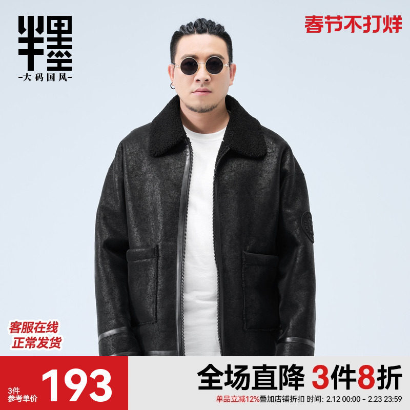 [两面穿]半墨大码男装皮毛一体夹克冬季新款加厚宽松胖子外套男士