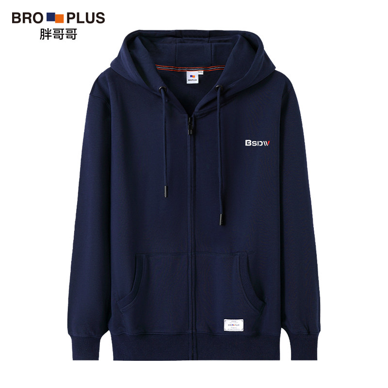 胖哥哥大码拉链男士卫衣春秋款加肥加大宽松连帽上衣潮胖子外套男