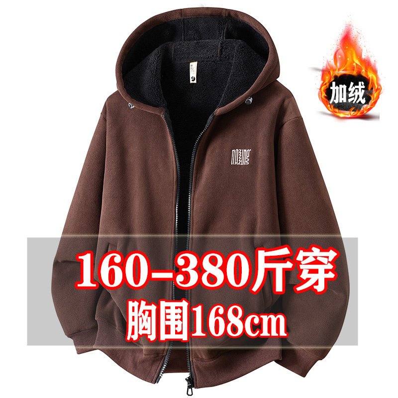 加绒加厚冬季拉链加肥加大码摇粒绒休闲开衫300斤夹克胖子外套男