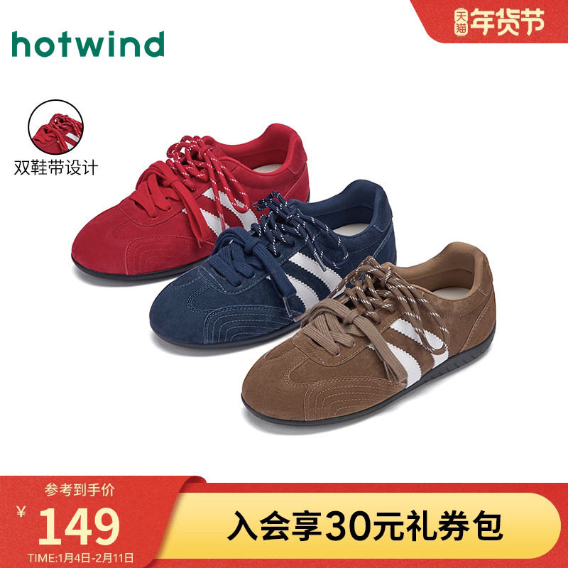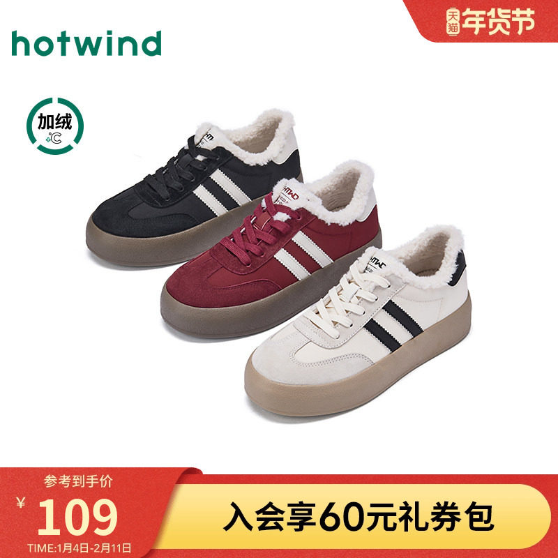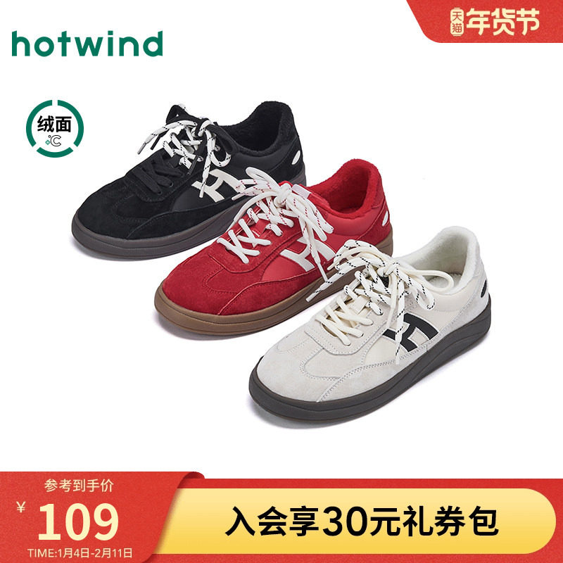 热风红色德训鞋女2025年冬季新款加绒运动休闲鞋百搭小白鞋女鞋子