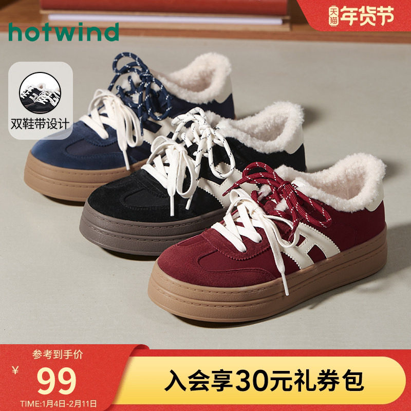 热风厚底德训鞋2025年冬季新款加绒棉鞋增高小白鞋红色休闲鞋女鞋