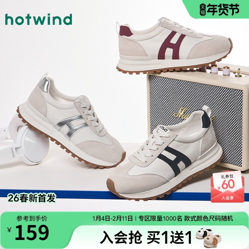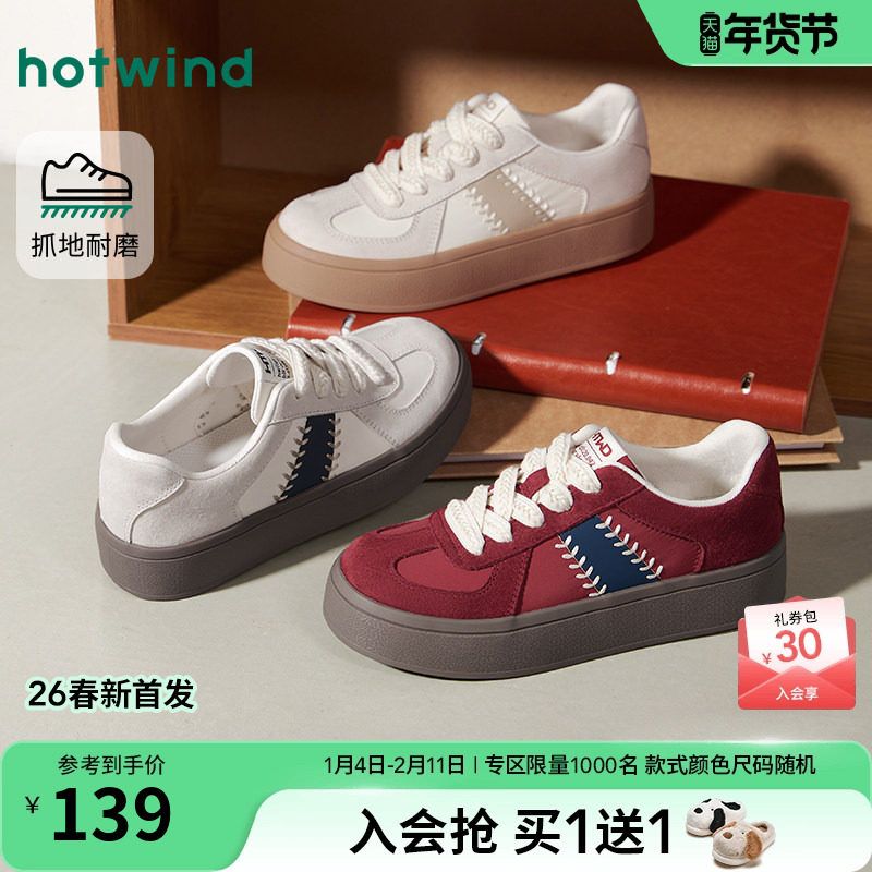 热风厚底阿甘鞋女款2026年春季新款百搭红色德训鞋新年运动休闲鞋