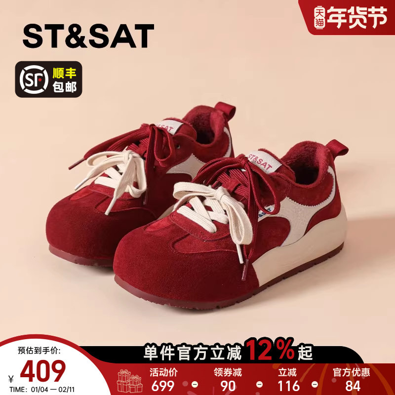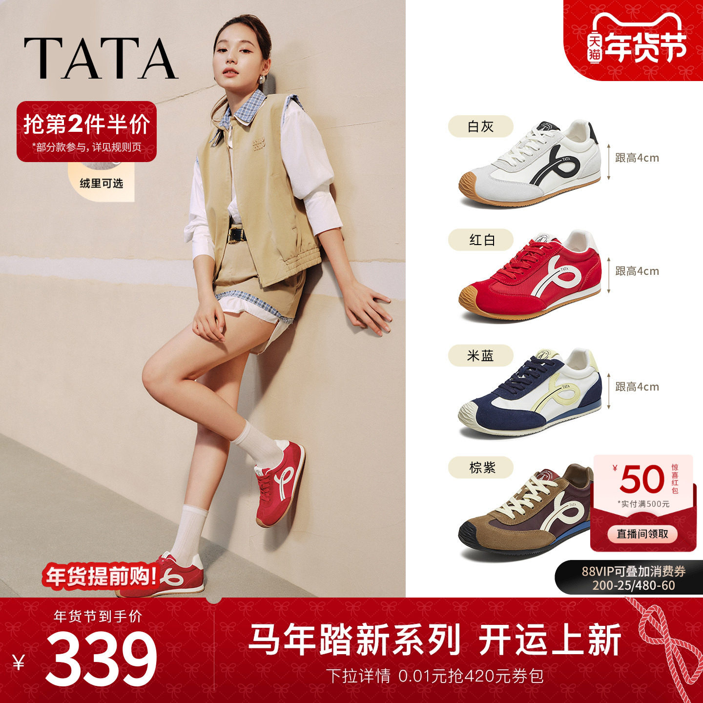 【马年系列】TATA他她可可豆女鞋运动鞋加绒新年德训鞋红色阿甘鞋