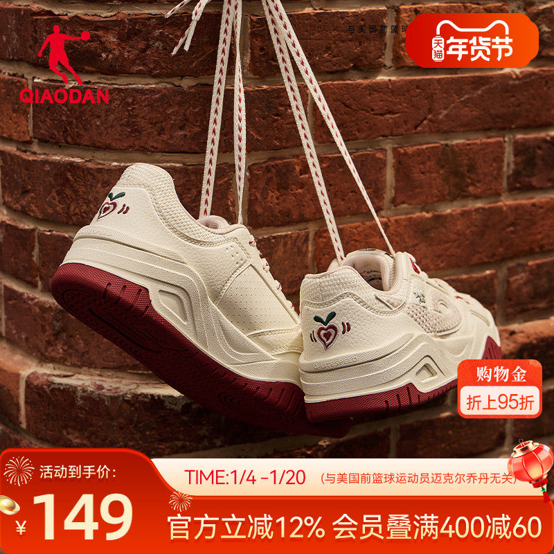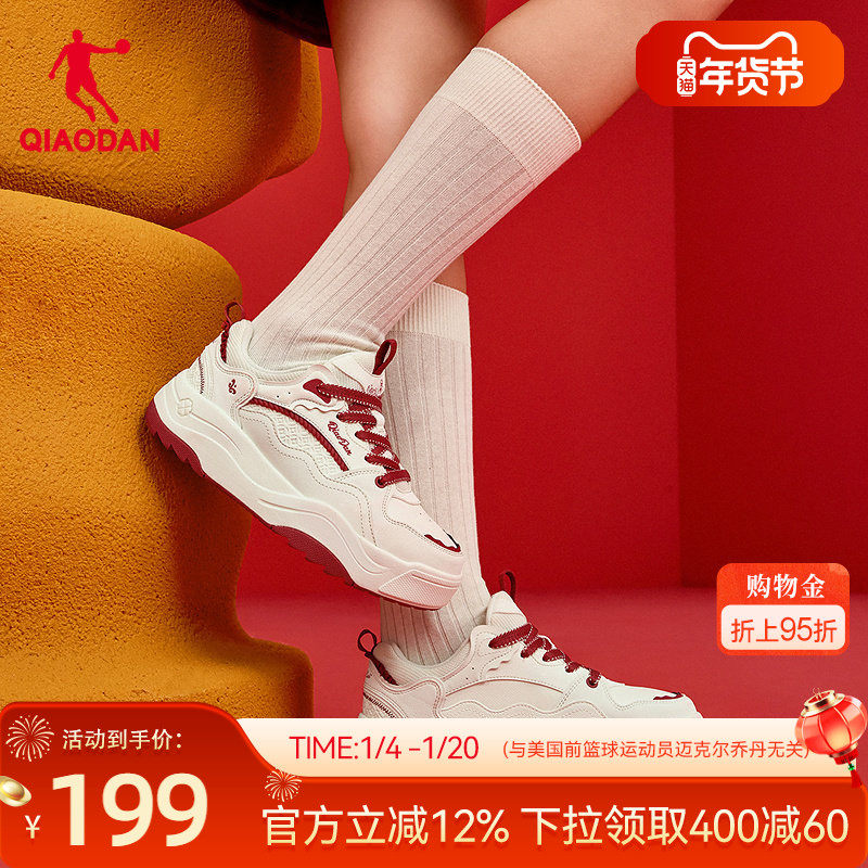 乔丹新年女红色皮面潮流面包鞋2026年春季新款运动板鞋厚底增高