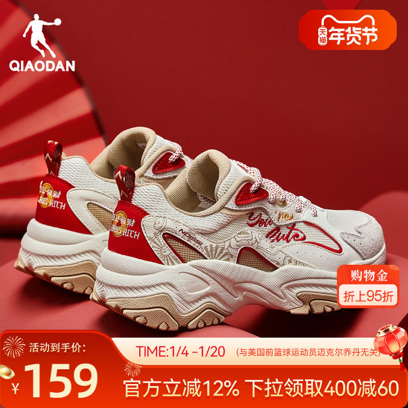 乔丹女款红色本命年运动板鞋厚底鞋增高冬季新款学生男新年休闲鞋
