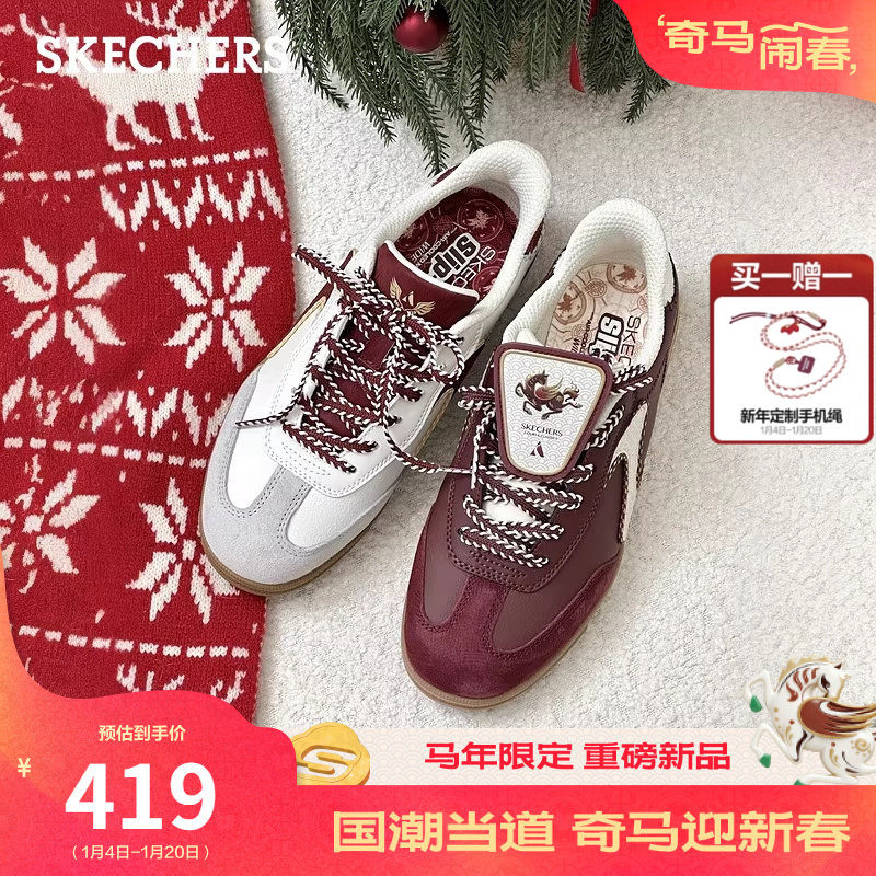 【胡可推荐】斯凯奇闪穿德训鞋2026新年好运红色复古板鞋男女款