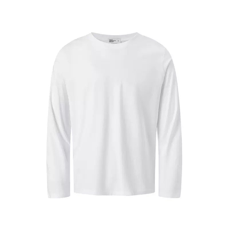 HLA/海澜之家山不在高系列25秋季新圆领纯色打底衫白长袖T恤男装