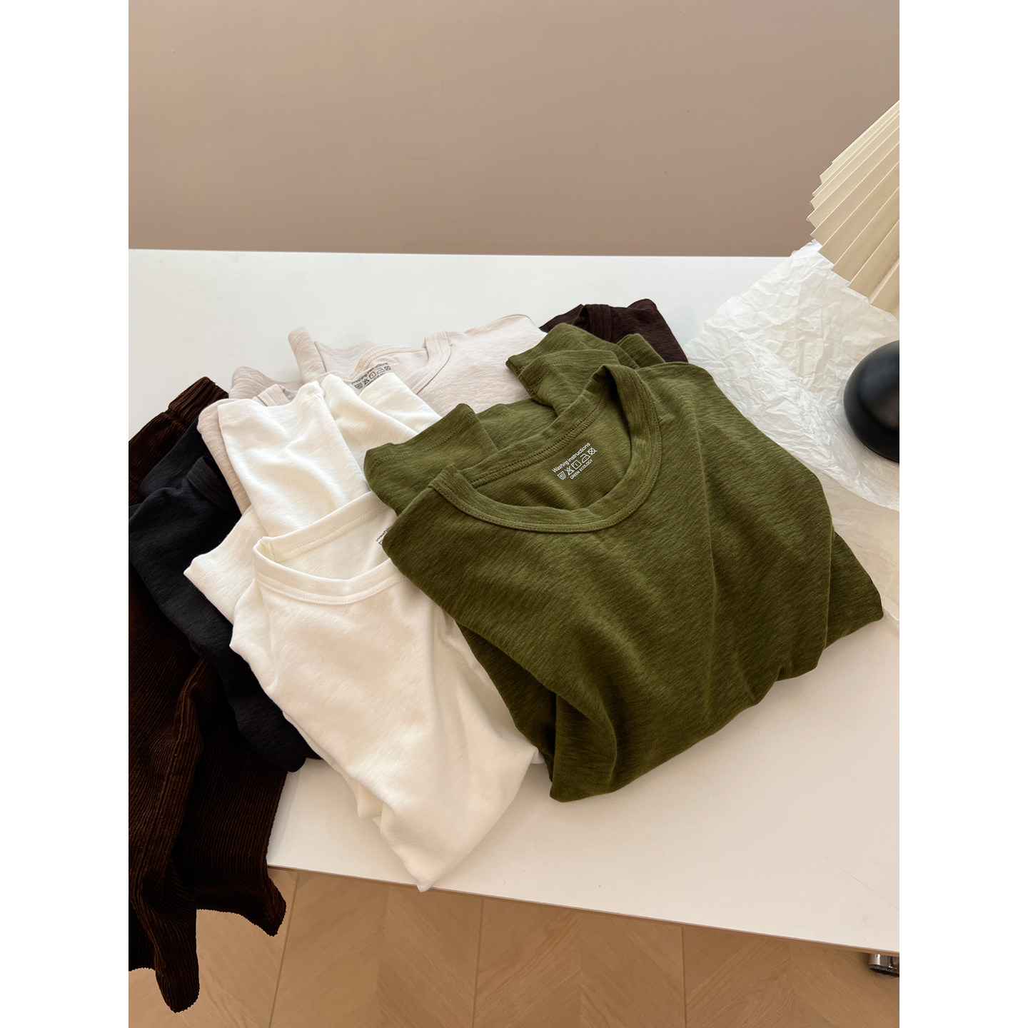 秋冬基础款软糯糯显瘦刚需四色入纯色圆领长袖T恤简约弹力打底衫